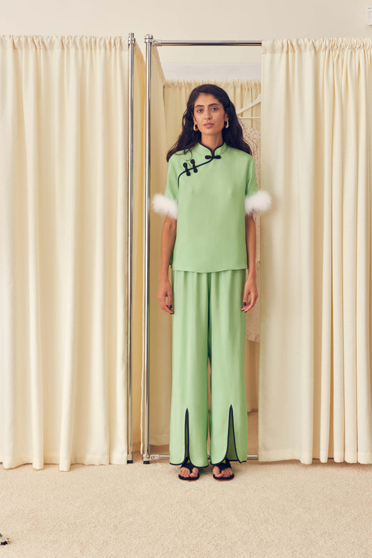 The Bow Pajama Set with Detachable Feathers in GreenRegular price €380,00 EURRegular priceUnit price / perSale price €380,00 EUR -