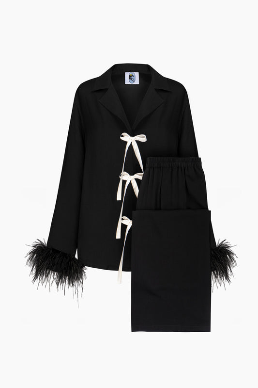 The Bow Pajama Set with Detachable Feathers in BlackRegular price €380,00 EURRegular priceUnit price / perSale price €380,00 EUR -